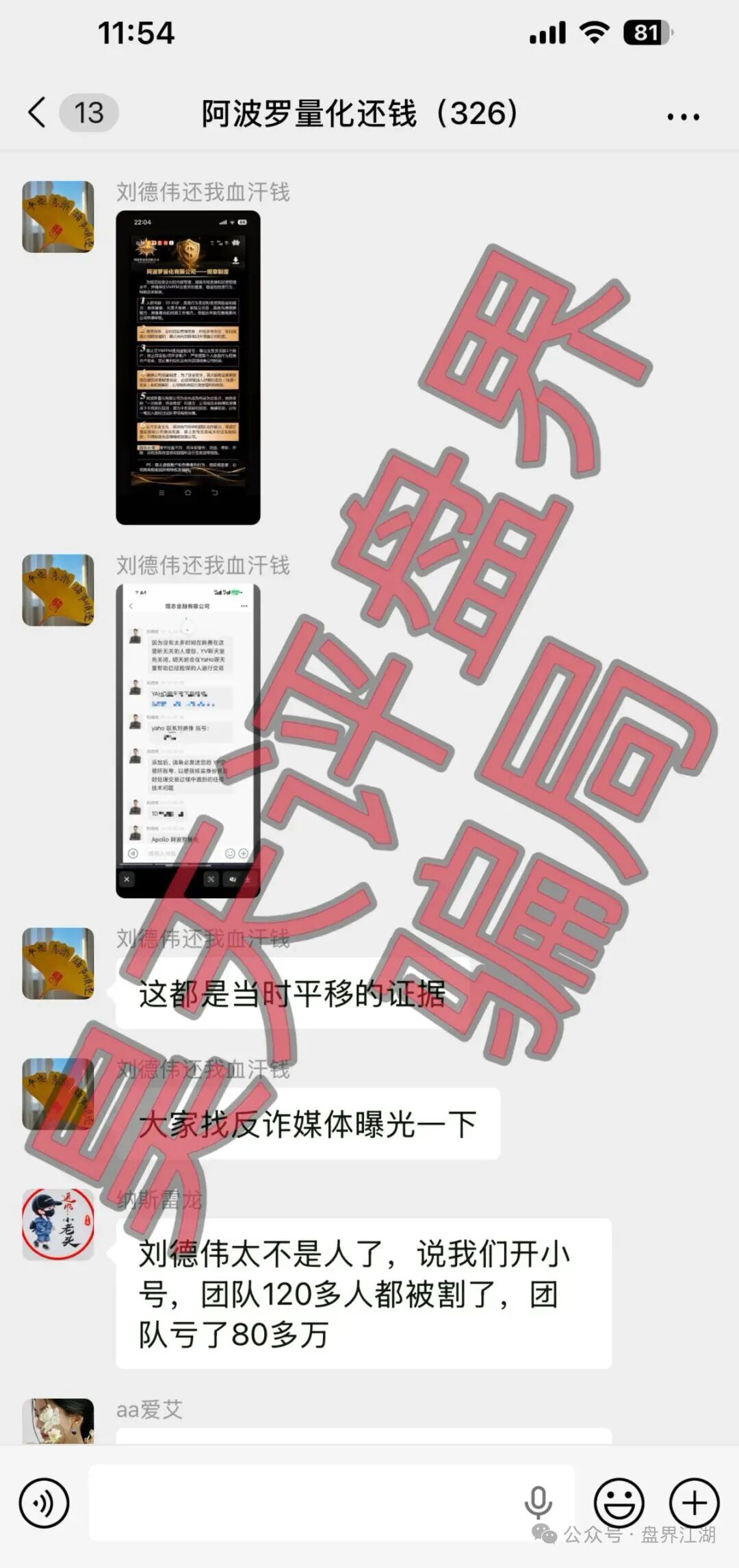 近期,打着“AI智能量化、海外团队操盘”旗号的阿波罗量化资金盘,正上演崩盘前的疯狂收割。此前“煜志金融”骗局的平移重启盘,模式就不重复曝光了,操盘手刘德伟近期已单割500多名投资者,冻结账户、禁止提现,甚至威胁维权会员,目前已被相关部门介入调查中,高度预警,即将崩盘跑路,直接上单割的证据: