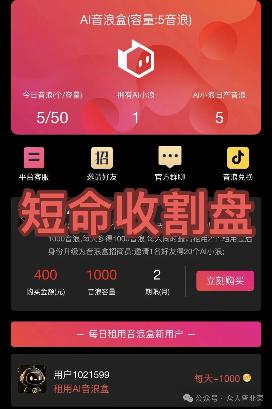 该项目昨日刚上线时伪装成‘闪购平台’,今日已迅速切换为‘AI音浪盒’身份,疑似因投诉压力频繁更换马甲。其运营模式毫无真实业务支撑,纯属短期收割型资金盘,资金池极不稳定,随时可能关闭提现、清零账户。切勿参与,更不可投入本金,白嫖尚可,投资=送钱。