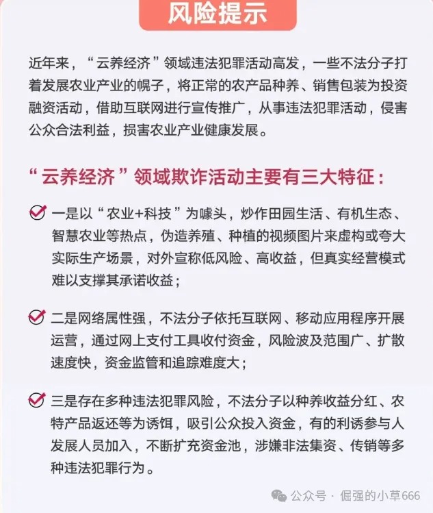 近年来,一种名为“云养殖”的投资模式悄然兴起,表面打着“互联网+农业”“智慧农业”的旗号,实则暗藏非法集资风险。农业农村部、金融监管总局、公安部、市场监管总局等多部门已联合发布紧急预警,明确指出此类行为属于违法金融活动,公众须高度警惕。