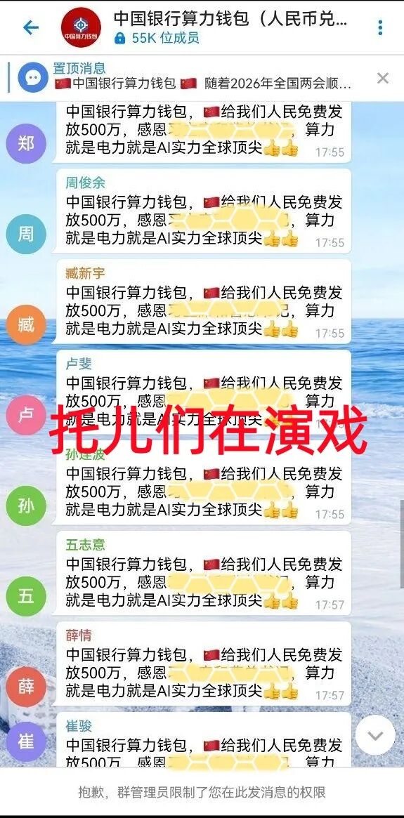 假冒中国银行,骗子编造了“算力钱包”,谎称给参与者发放500万元,如果你认为是假的,群里面那么多人都在说感恩感谢的话,这能有假么?殊不知都是群托们在演“双簧戏”,让不明真相的人上钩的诈骗!