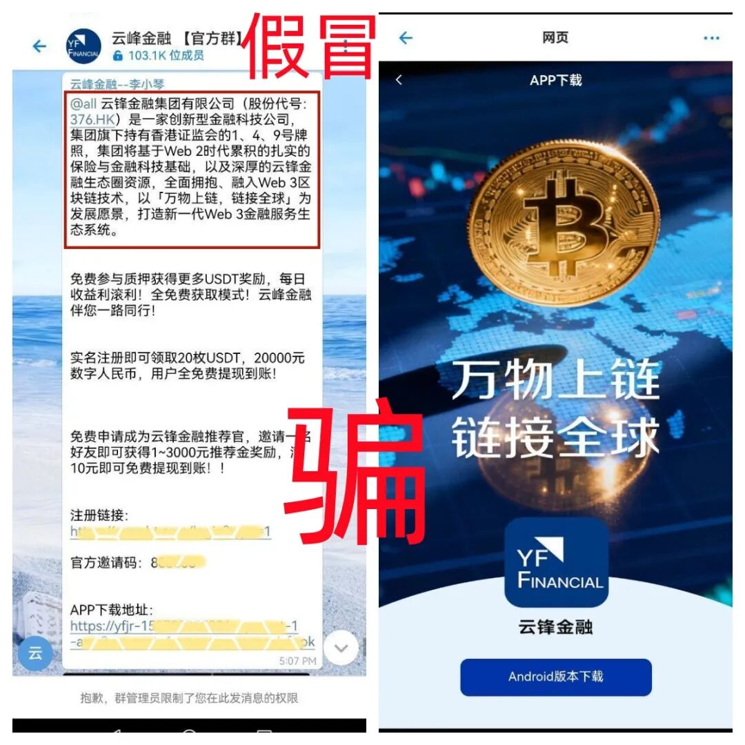 近期网络出现了假冒香港云锋金融集团有限公司的“云锋金融”APP。