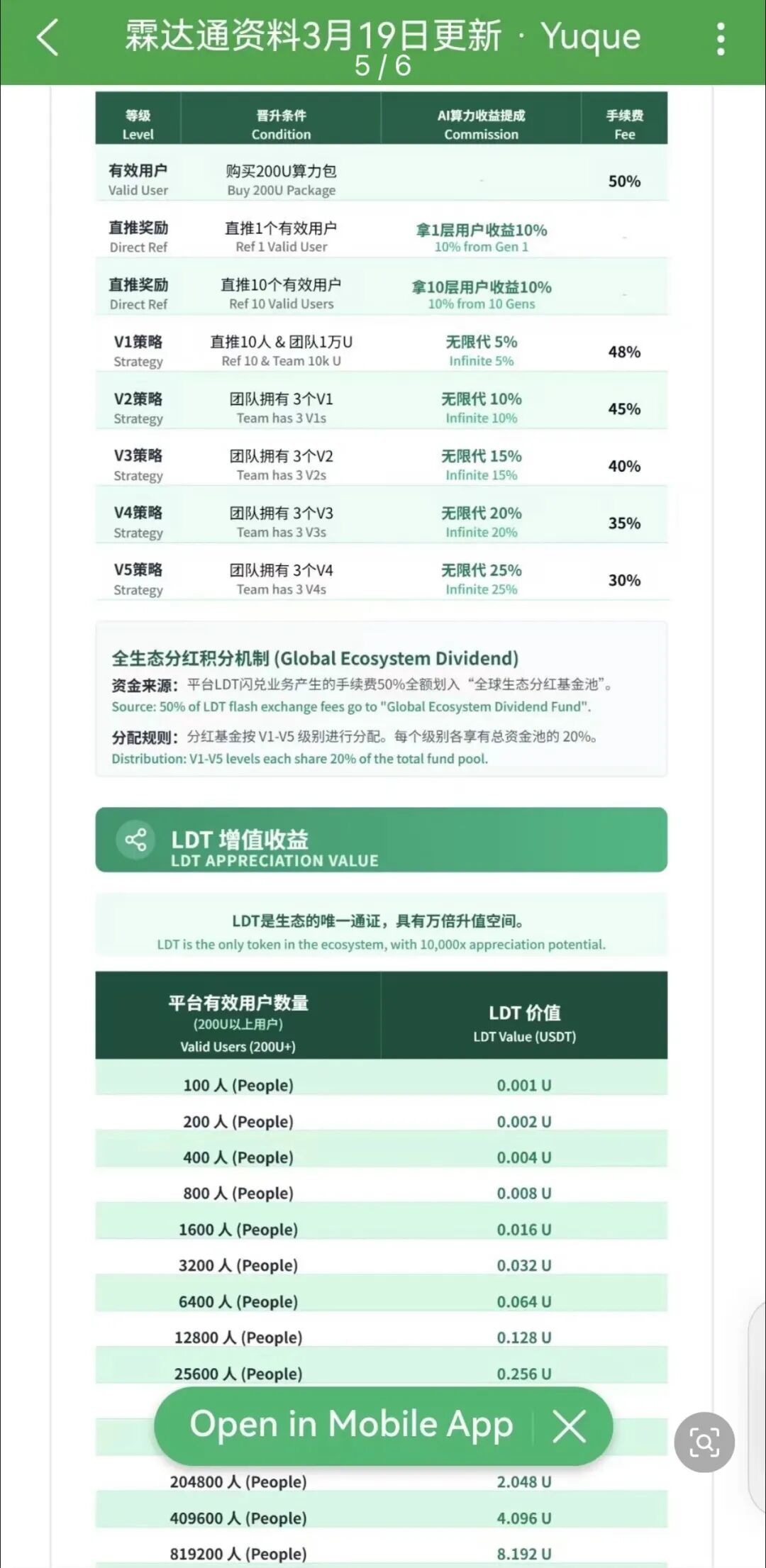 项目方宣称LDT是生态通证,靠用户增长带动币价翻倍,看似逻辑合理,实则一算就露馅。按他们的说法,达到目标用户后市值才几千万人民币,连主流山寨币都比不上,万倍升值纯粹是画饼。