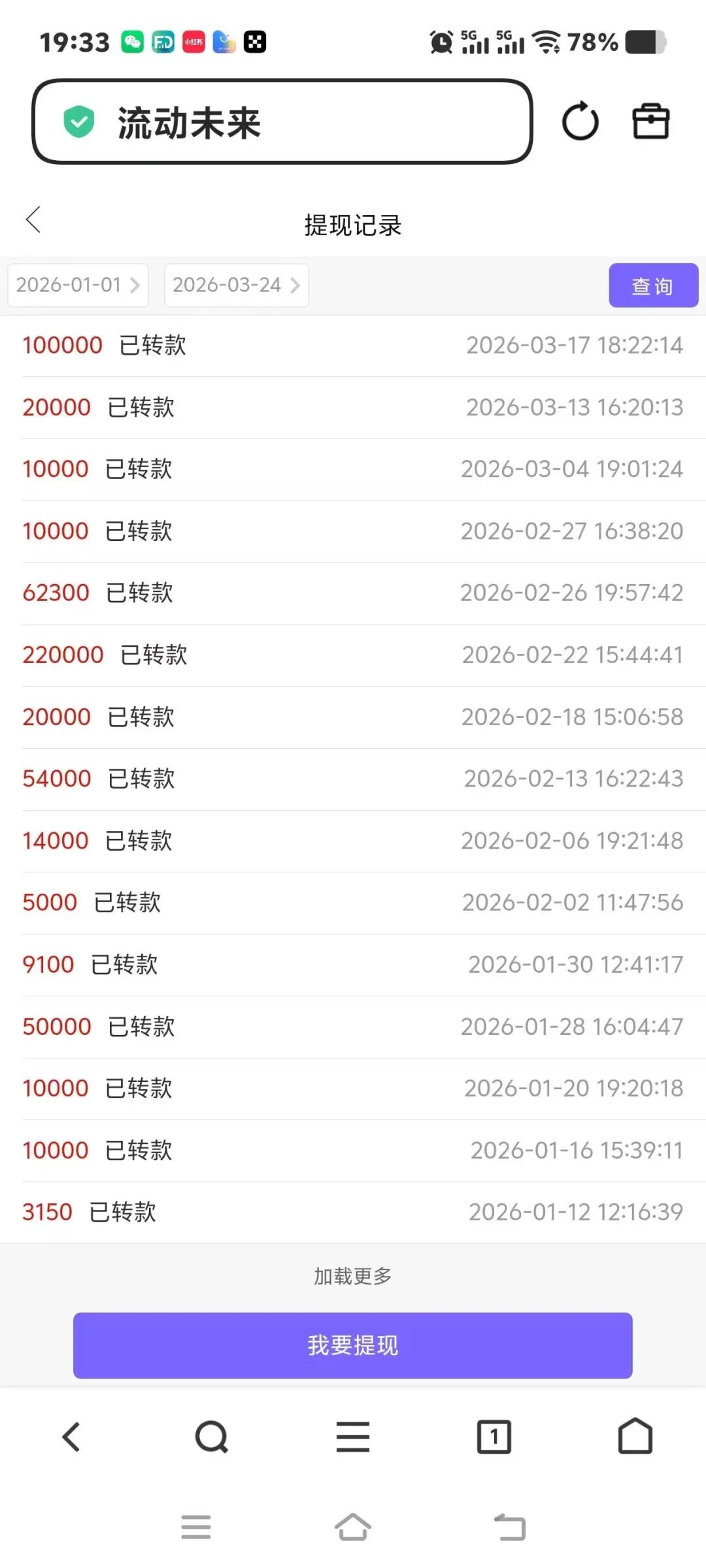 下面看看这是一位团队长的提现记录 短短两个多月 提现了五十九万多 ,你们所看到的这些团队长 早晚都会遭到清算 一旦被调查 这些都是非法收入 。到时候 不仅要把钱 全部退脏 甚至还要进去吃免费的牢饭 ,尤其那些明知是传销骗局 还在帮助诈骗团伙哄骗 大家加入的团队长 。