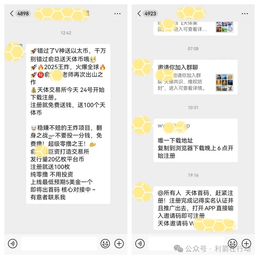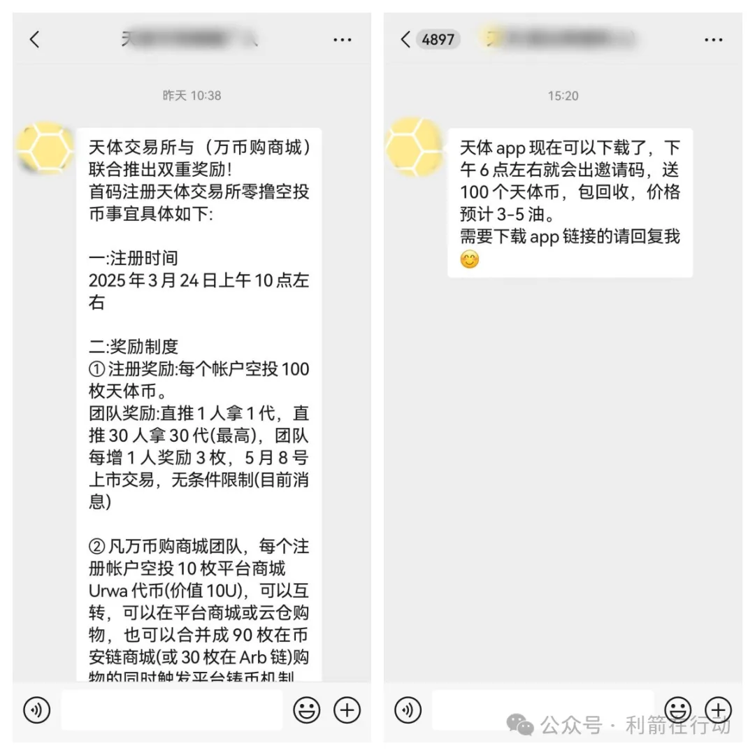 这几天宣传天体币的资料满网都是,利箭小编收到了不少微友发来的资料,还被拉进了一些天体币群里面,注册的时候要上传注册人的身份证,而且是正反两面都要,这明显就有猫腻!宣传“注册就免费送钱,送100个天体币……….”???虚拟币不是法定货币,只是人为炒作的!既然这天体币那么值钱,干嘛要送呢,这明显就有问题?