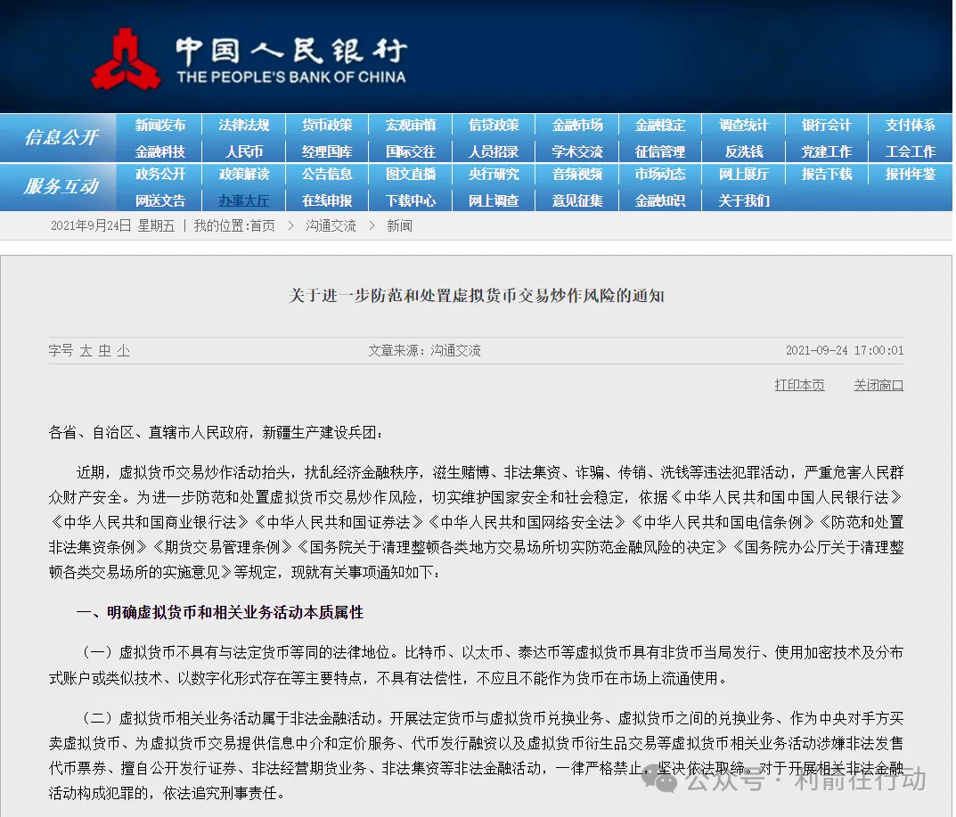 2021年9月24日,央行等十部委发布了《关于进一步防范和处置虚拟货币交易炒作风险的通知》