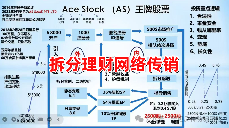 该项目声称是新加坡某公司推出的发行“电子股票”,宣称永不增发,只涨不跌,打着“拆分”理财的旗号,采用传销模式发展下线,以动态、静态等高额收益为诱饵,引诱不明真相的人群参与。