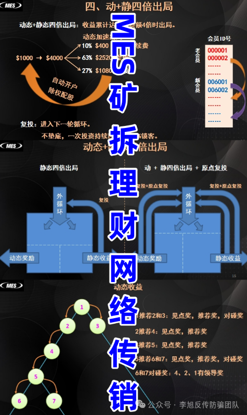 模式:该传销组织打着“国家项目”“分享经济”等旗号,采用五级三阶制模式发展下线,声称新人缴纳24375元,发展54个人上平台,出局回报1.1个亿。