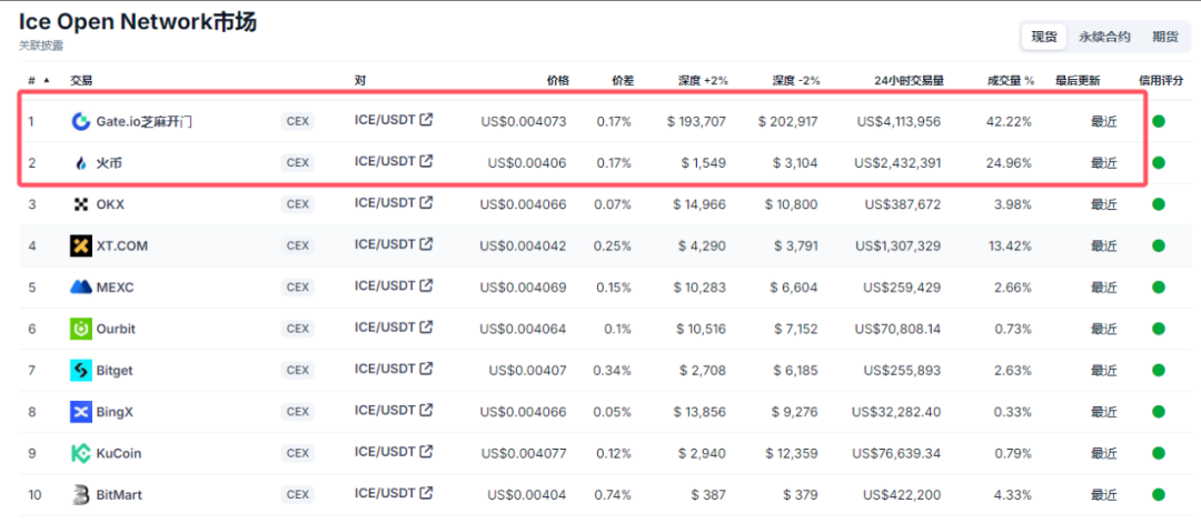 看看现在ICE冰币在哪些平台交易量多呢?基本上就是那几个平台,欧意的量是很少的,后续来说PI币也是类似的一个情况。