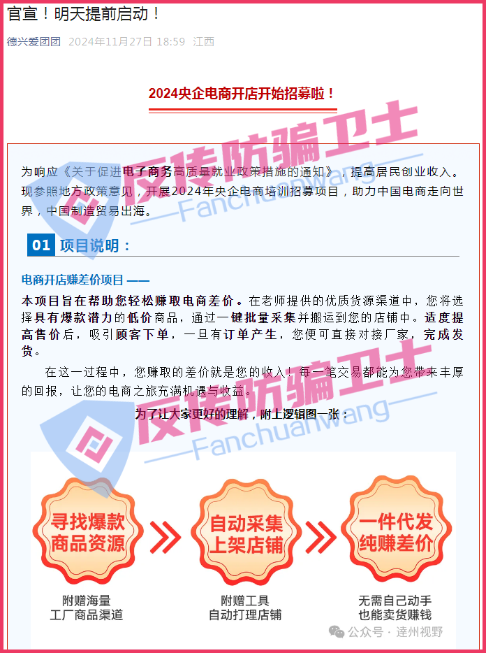 - 虚假宣传零投资:通过当地公众号发布看似正规的零投资做电商的文章,吸引受害者下载 “易达惠” app,降低受害者的警惕性。